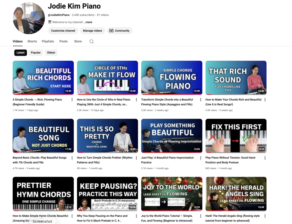 Jodie Kim shares expressive piano performances on YouTube, where she reimagines hymns and familiar melodies with rich harmonies and elegant phrasing. Her arrangements have inspired a growing community of listeners and pianists who love the beauty and emotion of her playing.